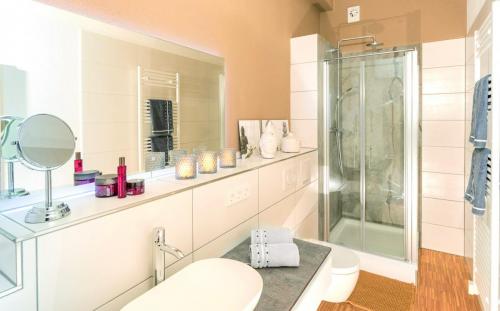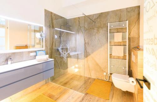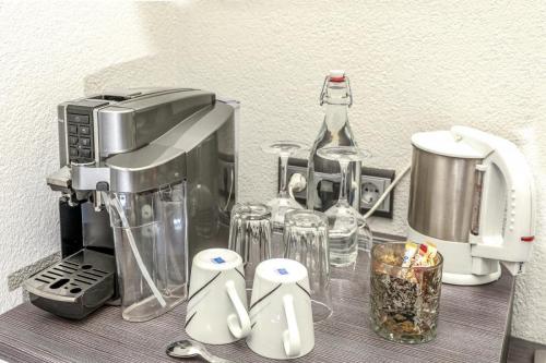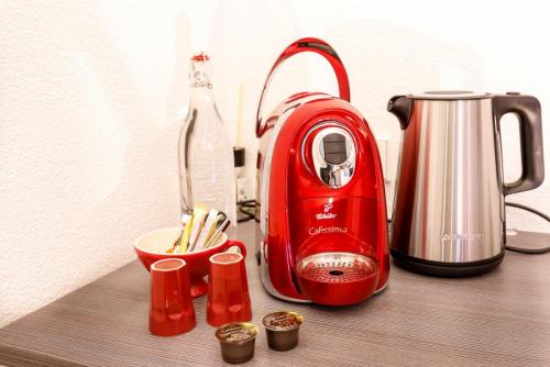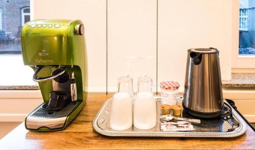 Dieses Apartment verfügt über ein eigenes Badezimmer, Nespressomaschine/Wasserkocher für Tee mit Zubehör, kleine Kochgelegenheit, Flachbild-TV und einen Sitzbereich.