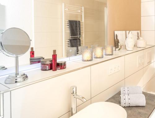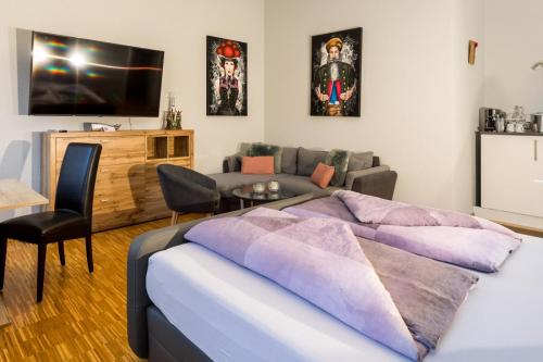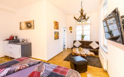 Dieses Apartment verfügt über ein eigenes Badezimmer, Nespressomaschine/Wasserkocher für Tee mit Zubehör, einen Flachbild-TV und einen Sitzbereich, Schlafsofa sowie eine kleine Kochgelegenheit.